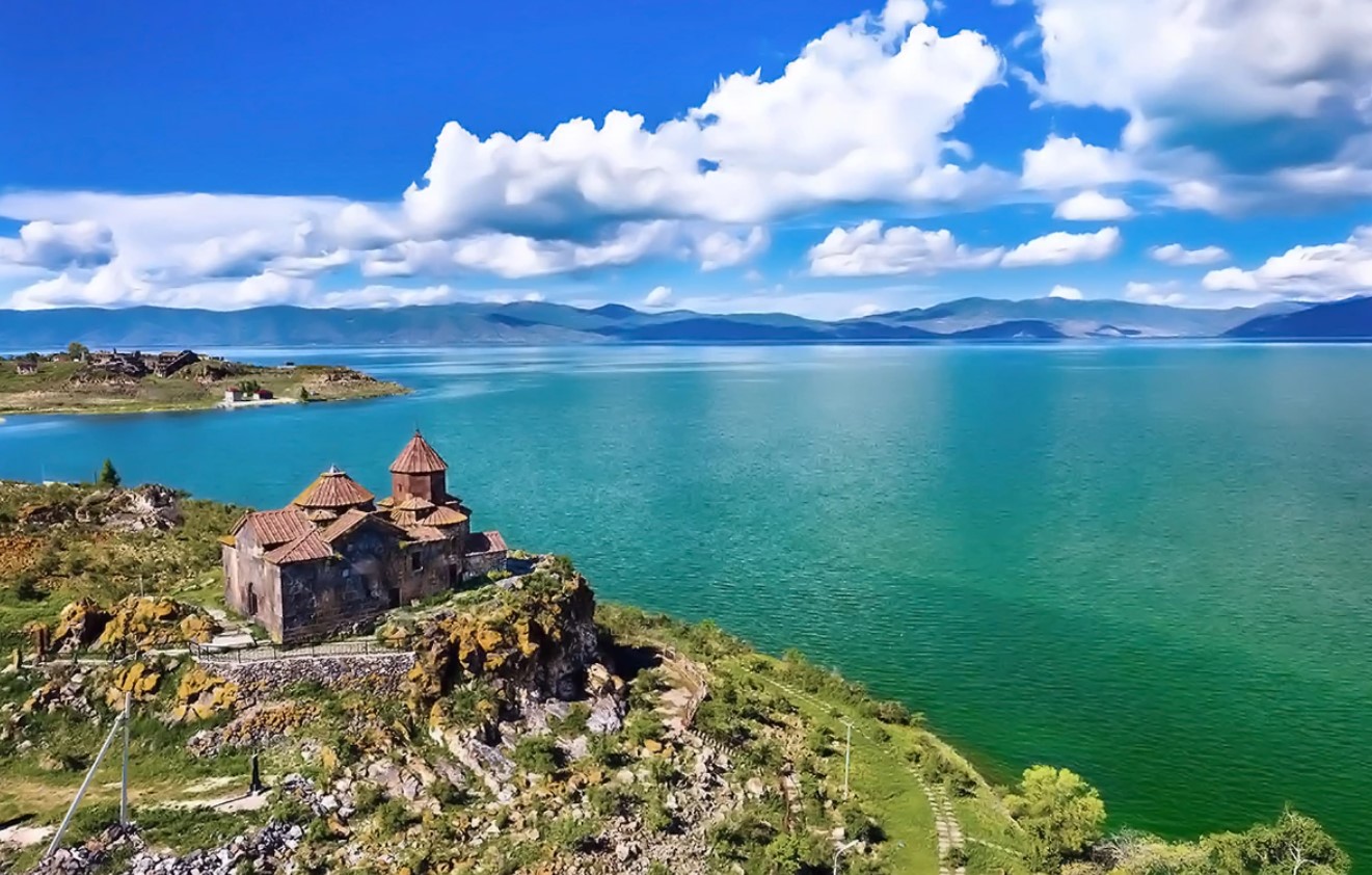 5. Озеро Севан — голубое сердце Армении, раскинувшееся на 1240 квадратных километров на высоте около 1900 метров. Двадцать восемь рек несут в него воду, и только одна — Раздан — уносит прочь. Цвет воды меняется от небесно-голубого до темно-сапфирового в зависимости от погоды, а рассветы здесь — отдельный повод приехать.