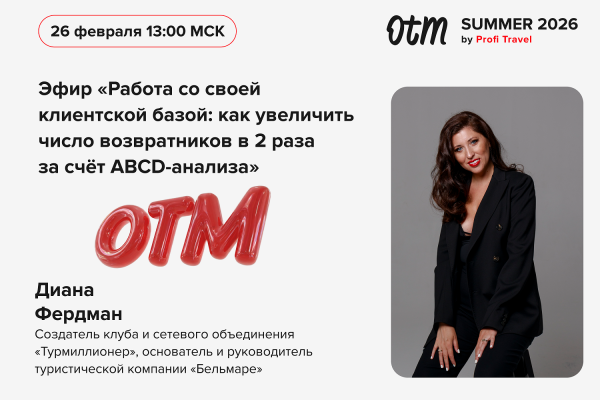 На эфире Диана Фердман даст свой авторский подход к ABCD-анализу и покажет, как с его помощью разделить базу постоянных туристов на сегменты и выстроить чёткую стратегию работы с каждым из них.
